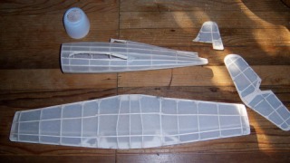 | hjlittman | Guillows Series 500 - Hellcat | Build | 16-Oct-07 19:28 |  | | Views : 4614 | | Tissue wet with alcohol and wing pinned down to dry. Wedges under trailing edge for wash out. |