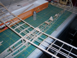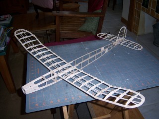 Coming along slowly. Five hours into it. Have almost all crossmembers and formers in the fuselage and the wing and tail surfaces are sanded.