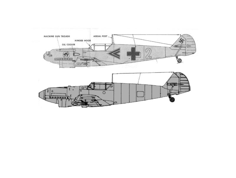 Comparison of drawing of Guillow's plans to accurate drawing of Bf-109 C/D |