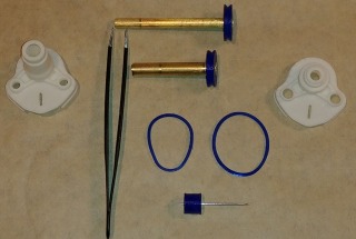 Here are the pulleys with the belts, but pulled slightly out of the transmission housing. The lower drive pulley works the larger drive shaft which is the inside propeller. The upper pulley is the inside driveshaft for the outside propeller. Note the belt for the upper pulley is crossed. This creates the counter rotation.