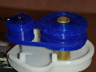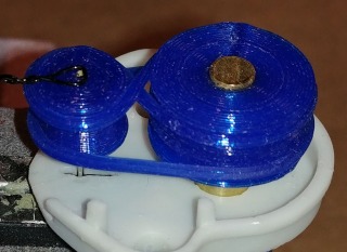 I couldn’t let the counter-rotating transmission go! I realized that gears wouldn’t work, but what about belts! I re-designed the gears into pulleys and thought I would use rubber bands, but couldn’t find anything small enough. Then a friend at work told me he had some filament for his FDM 3D printer that was very flexible and stretchy. He let me borrow a spool and I printed out the belts. They worked okay, but didn’t grab well, so I also printed out the pulleys in the same material and it worked like a dream!