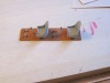 | Both bottoms on. The left one decided to warp, so it's been wet and is now drying. Hopefully straight. This is the top piece. For the most part I used Elmer's white glue on he bottom. It allows more work time an dhopefully will be easier to sand I did the leading edge here with CA. App.lied it to the 1/32 and then was able to hold/push the leading edge down on a level surface while it set. wing |