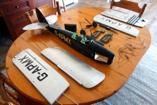 My Tiger Moth model was badly damaged yesterday! It crashed from it's hanging place in my garage. Many broken parts. Still I did intend to replace the rubberised rigging "wires"! This will make me do that! :-)