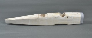 Fuselage filled in. The top section for the gunner's cockpit not stuck down as need access to paint and place a swivel stool which I have now made. The piece has a paper backing to keep it from breaking.