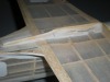 | I spent most of the last day or so adding small details to the fuselage. The Jelutong wood worked well on these small parts. The cooling gills, behind the exhausts (barely seen) are made of thin cardstock. |