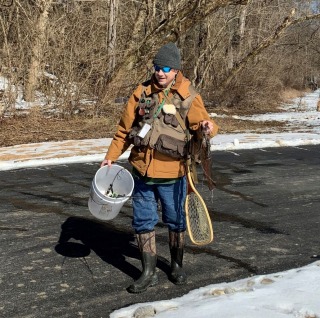 caught a 14" trout. had to pull it in by hand when the line got tangled on the pole.