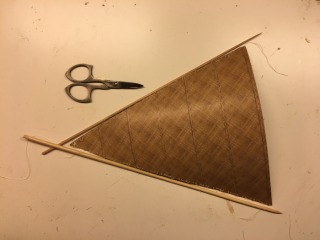 After it was cut out I added looped stitching along the edges so it could get tied to the masts later.