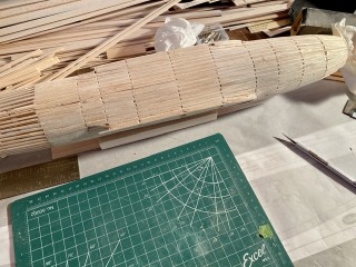 Gluing the planking in with CA, whittling it down and sanding the rest. Anyone else have any better suggestions?