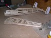 In the garage with another work in progress. This is a good shot of the 'anhedral' that was giving me so much trouble. Seems to have turned out OK thanks to Mr. Duckett's help.