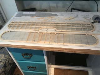 Started lower wing, but decided not to build diherdyl or make the aileron separate. This has been a challenge so far and I am frustrated with the complexity. I overshot with a more advanced build