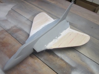 The joint smoothed out quite easily. After 3 coats of Thinned dope and a 32 sanding it's time to cover.Got boath top sides done, doped and sanded. Botoms next.