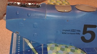 | edtherenderman | Aero-Werkes AW 11601 - Hannover CL IIIa | Build | 26-May-20 12:03 |  | | Views : 740 | | Port side front view. The vented hatch (there are two more on the bottom) was 3D printed. The smaller round hatches are .010 styrene cut to shape with 22 gauge wire used as the hinge. All decals, including the data plate in front of landing gear leg, and the weights and measures were created in Photoshop from pictures I found on the internet. Printed to waterslide decal inkjet paper. |
