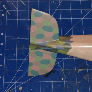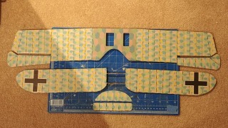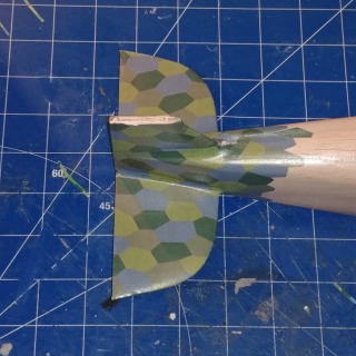 Top of tail feathers. Only the tail feathers of the fuse will have visible camo. The rest of the fuse will be painted a dark gray-blue. The aircraft came from the factory with hand painted lozenge camo over the entire fuse, but most Jastas painted over it. That’s what I’m going to represent here.