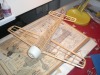 The wire kit landing gear is covered with neopreme and dressed up with masking tape. The tail wheel frame is made of wood and plastic.