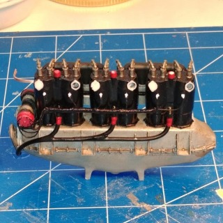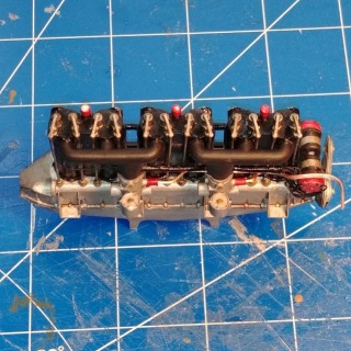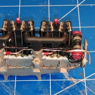 Top view showing rocker arms. Each was individually printed and installed. Push rods are 22 gauge wire.