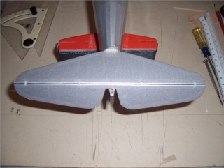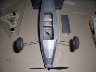 Inner structure. You can see the elevator push rod, and the rudder cables....