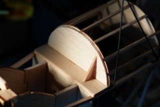 Former for the cowling, rear end. The 'wedge' is just temporary to ensure the former is built at the correct angle on my building board.