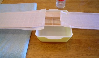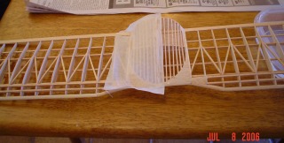 Covering the center section first. Silkspan is put on wet and this is what it looks like when it dries.