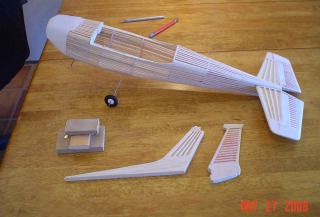Stab and elevators sanded, fin and rudder built up.