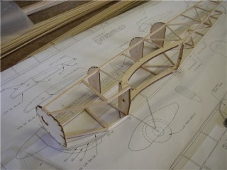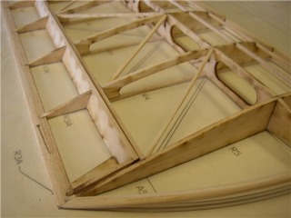 Wing construction under way. 36" wingspan, with scale dihedral.