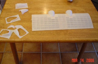 On the right you can see the extra stringers and lightweight filler combined at the place where the plastic piece meets the wood and on the left you can see why you do it. It doesn't look possible but one piece covers the first section. The secret is to p