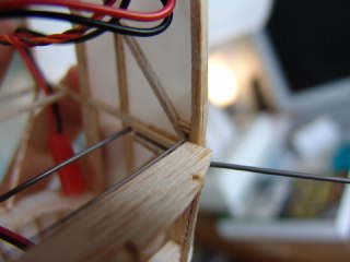 You can just see the little supports where the strut wire enters the covering and into the fuselage.