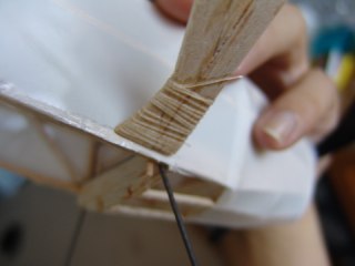 Detail of the struts thread wrapped to the support wire that goes through the fuselage.