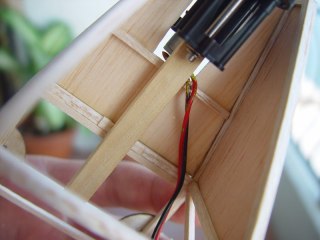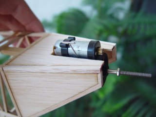 Motor mount. Motor mount stick has been sanded down so the motor is easy to slide off. It secures in with a locking pin.
