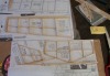 Building the wings and tail surfaces. The diecut wood for the ribs was very stiff. Not too good for rubber power FF, but real good for a 'swinger'.