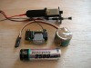 motor scale-the black box behind the motor is the 50ma batts. this can be detatched.in test 2 ill remove them and wire in 4x300ma batt giving 4.8 volts which means i can use the batts to drive the motor and the radio gear .im hopping for about 5mins fligh