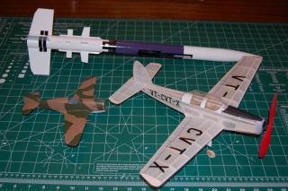 My hobbies are keeping me busy. I am using Deluxe Materials Sand N Seal no the balsa of the rockets fins. The P-40 is a Monogram 1/48 plasic model hand brushed with Testors paints.