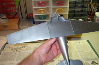 Fuselage and wings skinned in styrene & balsa.