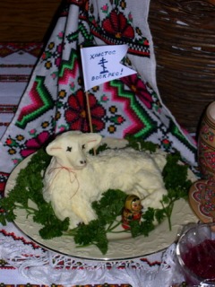My granny taught me how to sculpt a lamb from butter when I was a kidling. I do one every year. The inscription on the flag "Chirst has risen" in Ukie!