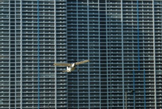 Flying in front of the massive Grand condo.