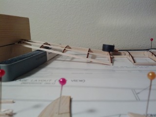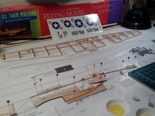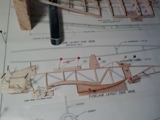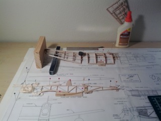 Getting ready to add dihedral, with a bit more of fuselage frame 3 completed in the foreground.