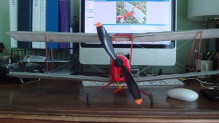 This plane has a couple of damage spots but thats ok. it still looks like a great sturdy trainer.