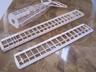 Bottom wing sanded to shape. Upper has added balsa for strength while silking. Lotta cutting and scallop shaping...hmmmm next time I'll try a laser cut kit.