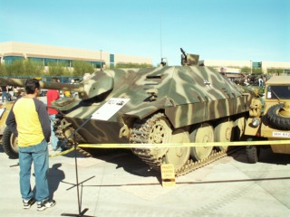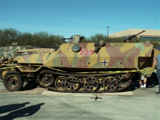 A German halftrack. Between it and the Hetzer you can see the top of a Kubelwagen, a VW version of the Jeep. It was reissued as the "Thing" in the mid 70s.