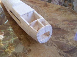The Mossie needs a cockpit. Mini chain saw to achieve navigator/ bombadier openings. Planking of decks and fuse complete.