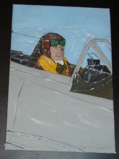 My first attempt at acrylic painting, A P-51 pilot. 4"x6"