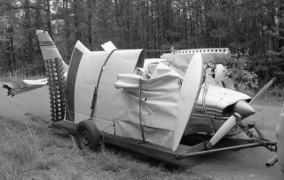 | simpleflyer | Guillows Series 300 - Piper Cherokee | Parked | 30-May-10 12:14 |  | | Views : 2839 | | N150ll bundled up to return home from its last flight. It sat in a storage hanger for a few months until our boss sold it for salvage. One day, while visiting the remains, we decided to borrow a gas cap and the ID placard which survive today as a memento of some very happy days over a third of a century ago. |