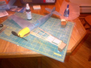 | Mazaman | Guillows Series 500 - BF 109 | Parked | 26-Aug-12 05:13 |  | | Views : 1301 | | snapped stringers replaced. Damage was more extensive than first thought. Dihedral reset and wing reattached. |