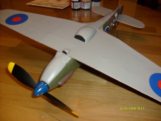 I gave up with the wing firings. It is already finished and I learned a lot with this project. Please notice the white spots that started to apear in the wings... I think it is because the dope contaminated the Tamiya spray paint :( ¿Do someone know some