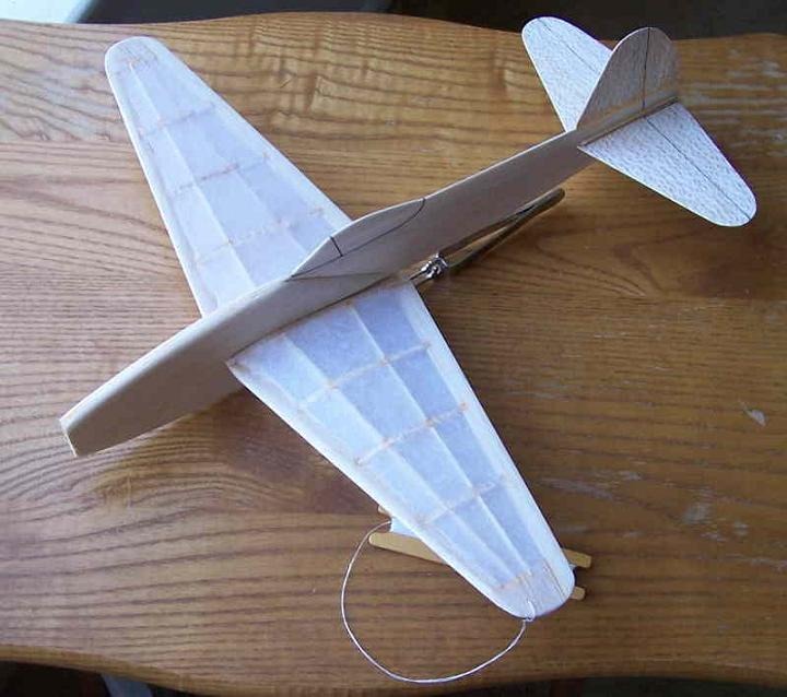 A couple of coats of thinned white glue were applied. Some lead shot inserted into the nose. Swing line attached to wing. And we are ready to fly. Slightly breezy today. Test glides with balance weight but no string were OK, but not as good as the Cloud Buster.