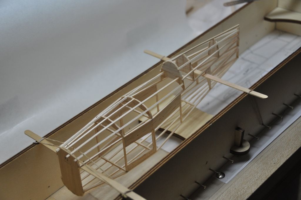 In the jig setting the fuselage top formers and stringers.