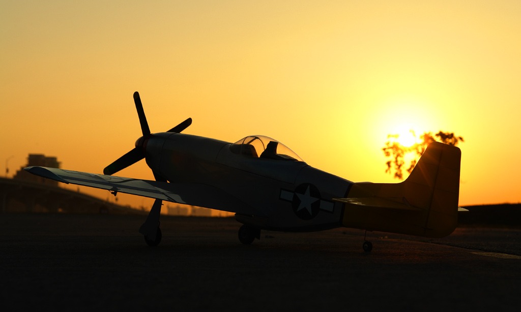 Rolled out of the hangar, sunrise over the Mustang. Another mission awaits.