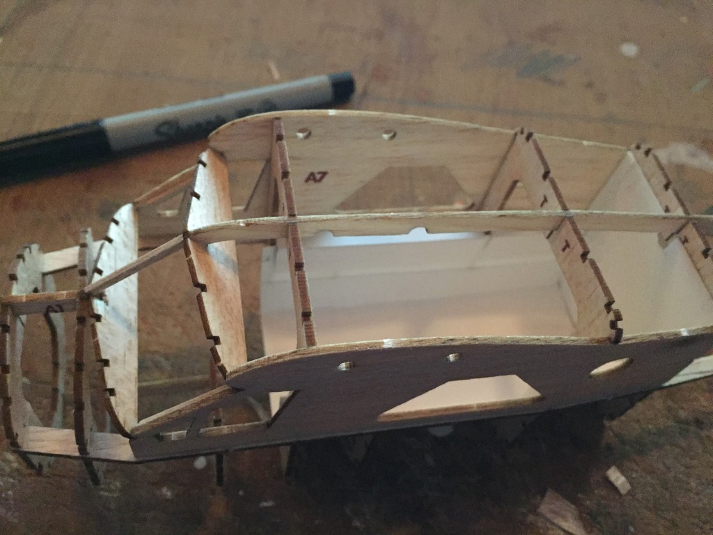| heywooood | 16-Apr-17 17:14 | | so the interiors are just rudimentary because I don't like to look inside and see bare balsa ribs and bulkheads but I don't want to spend 6 months scratching up a 'real as it gets' interior either. The cardstock is a quick and decent way to create a floor, add side panels, and an overhead liner that can be painted and look great through the tiny acetate windows of a completed model. You just score it with a ruler and xacto knife to make straight folds where you want them and use white glue to attach the pieces to each other. or CYA works just as well. Bang! no more unfinished interiors. |