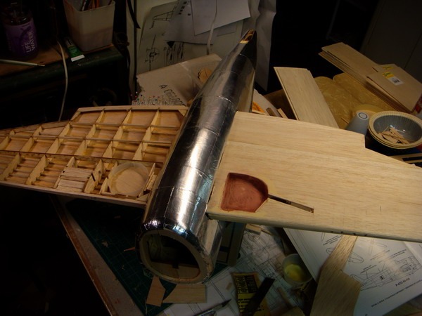 Starboard wheel well work. Started the covering of the starboard wing.
