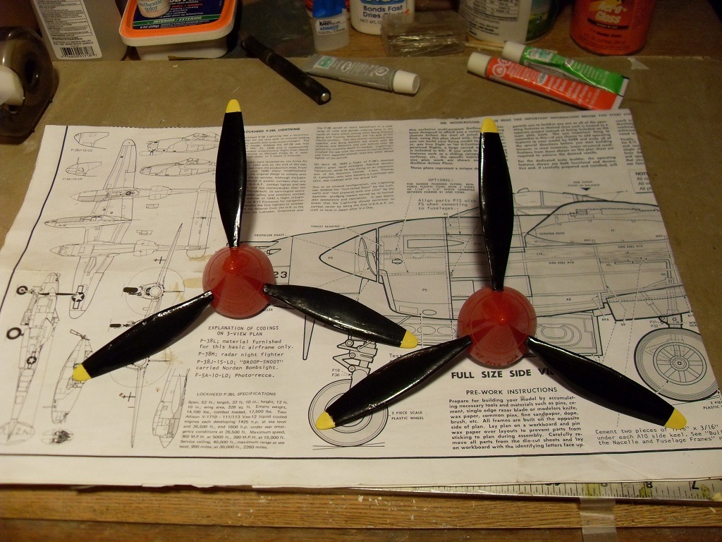 | Pauli72 | 13-Jun-12 03:33 | | I made the props from laminating 3 pieces of 3/16 balsa. Then carved and sanded to shape. The "HOW TO" section on this forum was a great help. Left and right assemblies are mirror because engines were counter-rotating to one another. |