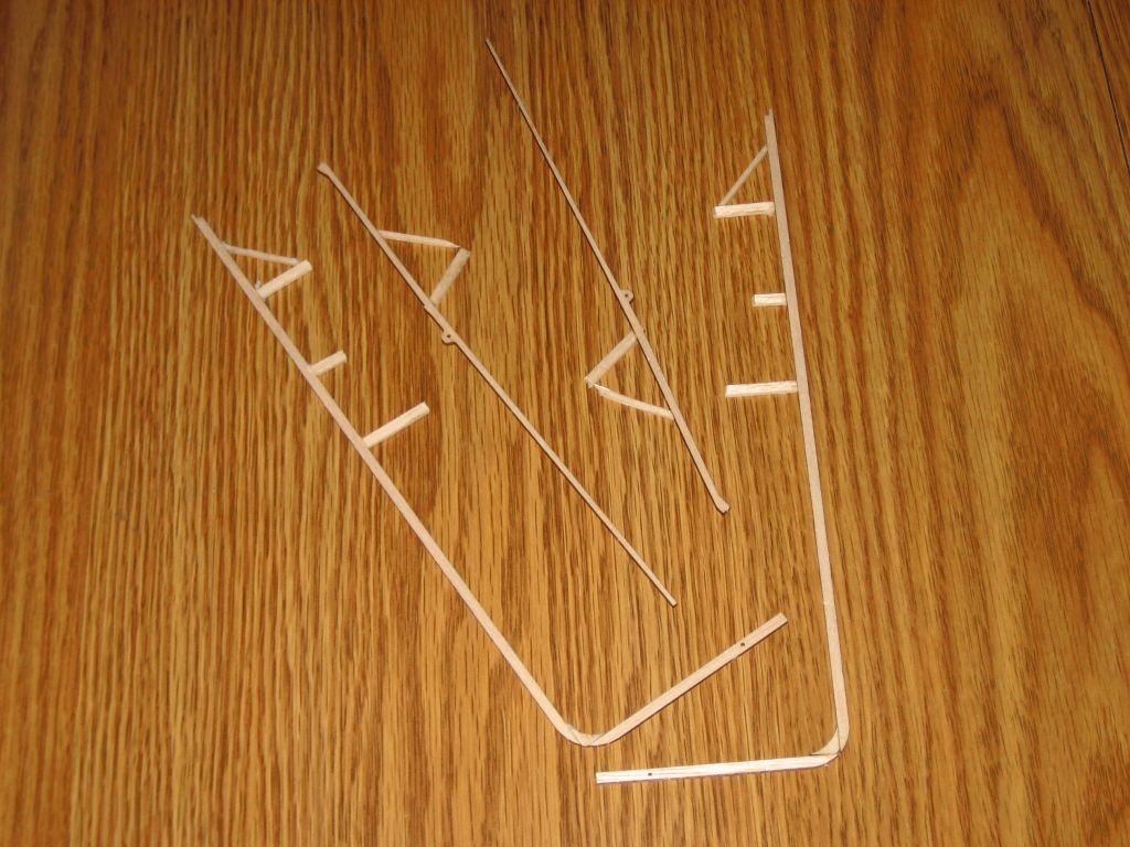 Here are the fuselage pieces. The ones that look like L's go on the outside and the other ones go on the inside.